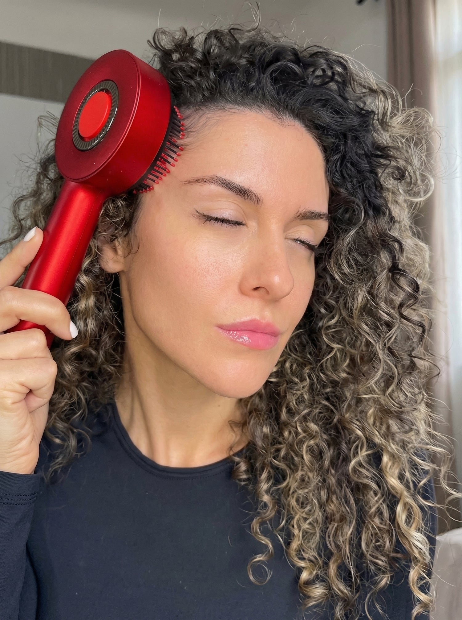 Verbessert die Durchblutung, beruhigt die Kopfhaut und fördert ein stärkeres Haarwachstum dank Vibrationen und rotem Licht.
